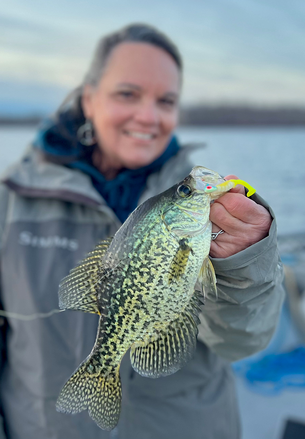 As an experiment, I switched lures, throwing a 1/16-ounce live bait jig tipped with a 2-inch Strike King paddle tail. Casting and retrieving with a sweep-fall-sweep-fall presentation was very effective. The crappies did seem to prefer the added action of the swimming tails. Had there been more time, we would try spinners too, but with the sun going down, it was time to call it a day.