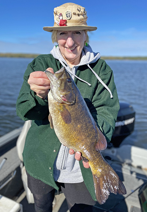 The moderate, 1000-acre lake we visited is known as a mixed species lake. There are decent numbers of walleye, bass, crappies and sunfish. When we arrived at the landing, I was surprised by the warm surface water. The temperature, 65 degrees, was a contrast from the mid-40-degree air and felt warm to the touch. It made me hopeful that fish would remain active, despite the sharp dip in overnight air temperatures. There was still a stiff wind from the west, and I hoped that the “walleye chop” on the water would be helpful as well.