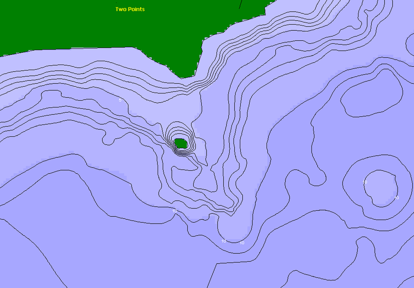Today, I’m back to the project concerning interpretation of terminology used to describe lake map and charting data. So far, we’ve compared images of steep breaklines, and soft, slow tapering breaklines. Descriptions of both are simple, and straightforward, making interpretation easy. Eventually, we’ll get into more complex and nuance structures, but in the interest of building on a solid foundation, let’s continue with a few more basic structures. Today, let’s talk about submerged, shoreline related points.